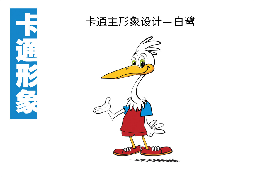 卡通形象在設(shè)計上抓住了白鷺長嘴, S型脖型、細(xì)腿的三大特點,運用夸張的手法,放大特點,進(jìn)行擬人化設(shè)計。兩個翅膀變化成人形的手臂,搭配休閑時尚的服裝,更形象生動,人性化。頭上豎起的白毛,體現(xiàn)出這個形象的自信和神氣的一面,整體形象具有美式漫畫的幽默感,奪人眼球,白鷺健康快樂悠閑的形象與奇鷺品牌的整體形象統(tǒng)一,展現(xiàn)了奇鷺的精神,傳遞著積極向上的正能量。